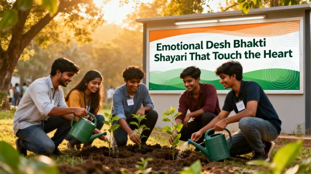 Emotional Desh Bhakti poetry Hindi content resonates deeply with readers seeking heartfelt expressions. These lines reflect sacrifice, love, and connection with the country in a human way. If you are searching for heart-touching patriotic shayari, this section will fulfill your emotional intent. The words here bring alive the real essence of patriotism.
